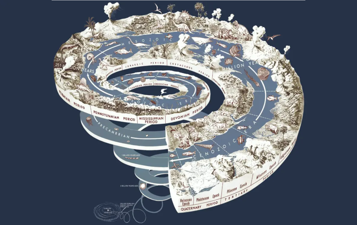 - Hero: Geological Time Spiral, United States Geological Survey - Graham, Joseph, Newman, William, and Stacy, John, 2008, The geologic time spiral—A path to the past (ver. 1.1): U.S. Geological Survey General Information Product 58.